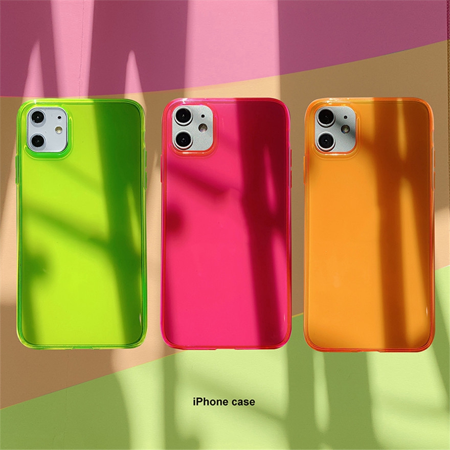 Iphone Se 2020 11 Pro Max Xr X Xs Max 7 8 Plus Phone Case Neon Fluorescent Solid Color Soft Imd Clear Protection Back Cover Shopee Indonesia